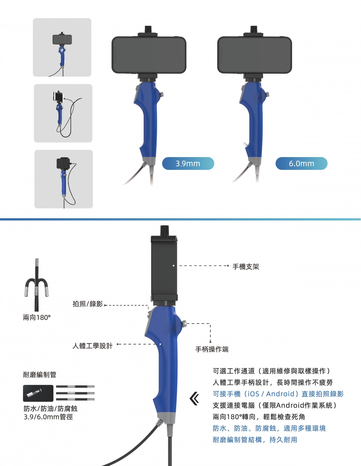 6mm 和 3.9mm 探測鏡頭擺頭曲角度最大180°